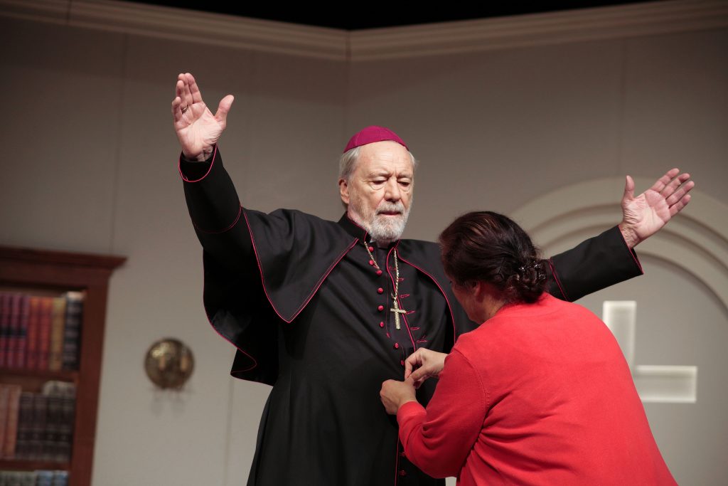 Kann man in diesen Tagen ein Theaterstück über Machtmissbrauch und Vertuschung in der katholischen Kirche inszenieren, ohne konkret über sexuellen Missbrauch zu sprechen? Ist das nicht naiv und ignorant den Opfern gegenüber? Überraschenderweise geht das, wie das Theater Trier mit der Komödie „Kardinalfehler“ zeigt. Geschrieben von den Satirikern Alistair Beaton und Dietmar Jacobs, beide bekannt als Fernseh- und Theaterautoren. Die britisch-deutsche Koproduktion liefert ein spritziges Drama aus einem bischöflichen Palais, gespickt mit viel Witz und Ironie.